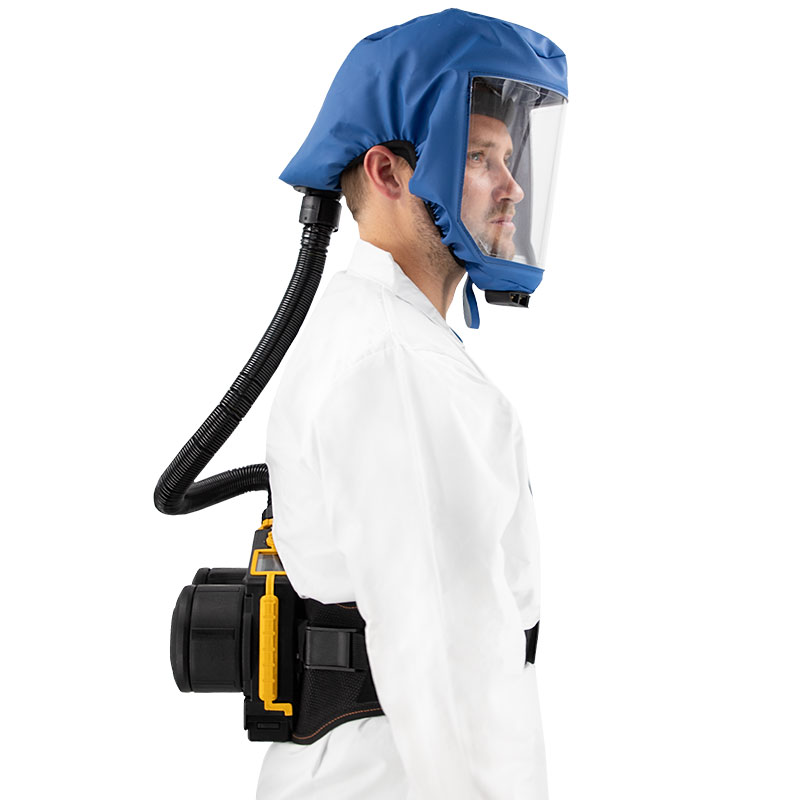 The new e-breathe Short & Long Hood series of lightweight positive pressure hoods offer maximum comfort and the highest level of protection. They feature an attractive, ergonomic design and a soft-fitting face seal made of elastic material that adapts to different face sizes and shapes. The special design makes it possible to wear glasses under the hood without any noticeable, annoying draughts. Inside the hood is an adjustable, permanently installed head restraint that allows for immediate use.