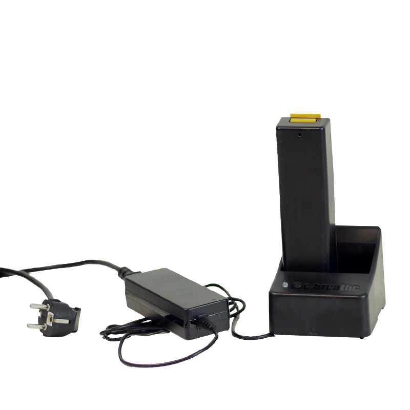 Charging cradle for lithium-ion batteries for the e-breathe e-flow respiratory ventilator.